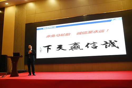 赤兔馬事業部總經理陳志軍在發表會上致辭,他對各位嘉賓蒞臨現場表示衷心感謝,并指出,"風火輪"家族作為一個全新系列,其新技術、新外觀、新性能將進一步增強赤兔馬真空胎的市場競爭力,是赤兔馬品牌發展史上的一座重要里程碑,將對通用股份向世界級輪胎品牌的邁進帶來巨大推動作用。