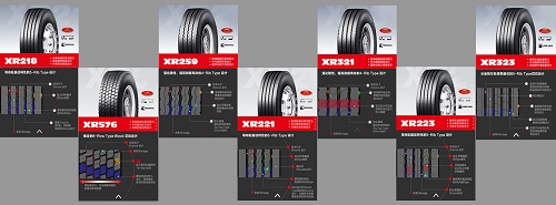此次“風火輪”系列產品包括:XR218、XR576、XR259、XR221、XR321、XR223、XR323。均采用全新胎側設計,新增用途圖標以及最佳安裝輪位,司機朋友們可根據個人駕駛需求和行駛的道路條件進行產品選擇。