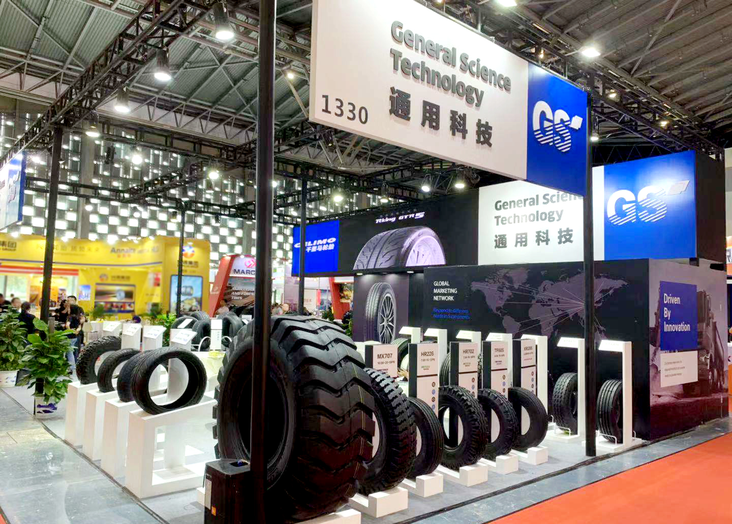 本次展會(huì),通用股份展臺(tái)設(shè)計(jì)以標(biāo)志性品牌顏色——藍(lán)色為主題調(diào),展廳整體色系統(tǒng)一、層次鮮明,凸顯了通用股份科技、創(chuàng)新、未來(lái)的產(chǎn)品設(shè)計(jì)理念,向用戶展示了通用始終以提升創(chuàng)新能力為核心,大力推進(jìn)智能制造,打造世界一流民族輪胎品牌的發(fā)展愿景。
