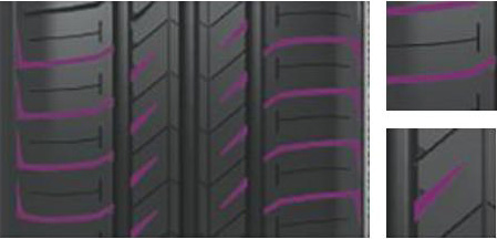 三條優(yōu)化寬度的縱向排水溝保障了輪胎的濕地排水性能,有效防止了輪胎的側向水滑。