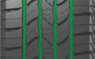 胎肩花紋厚實提升花紋耐久、載重及行駛轉向性能。